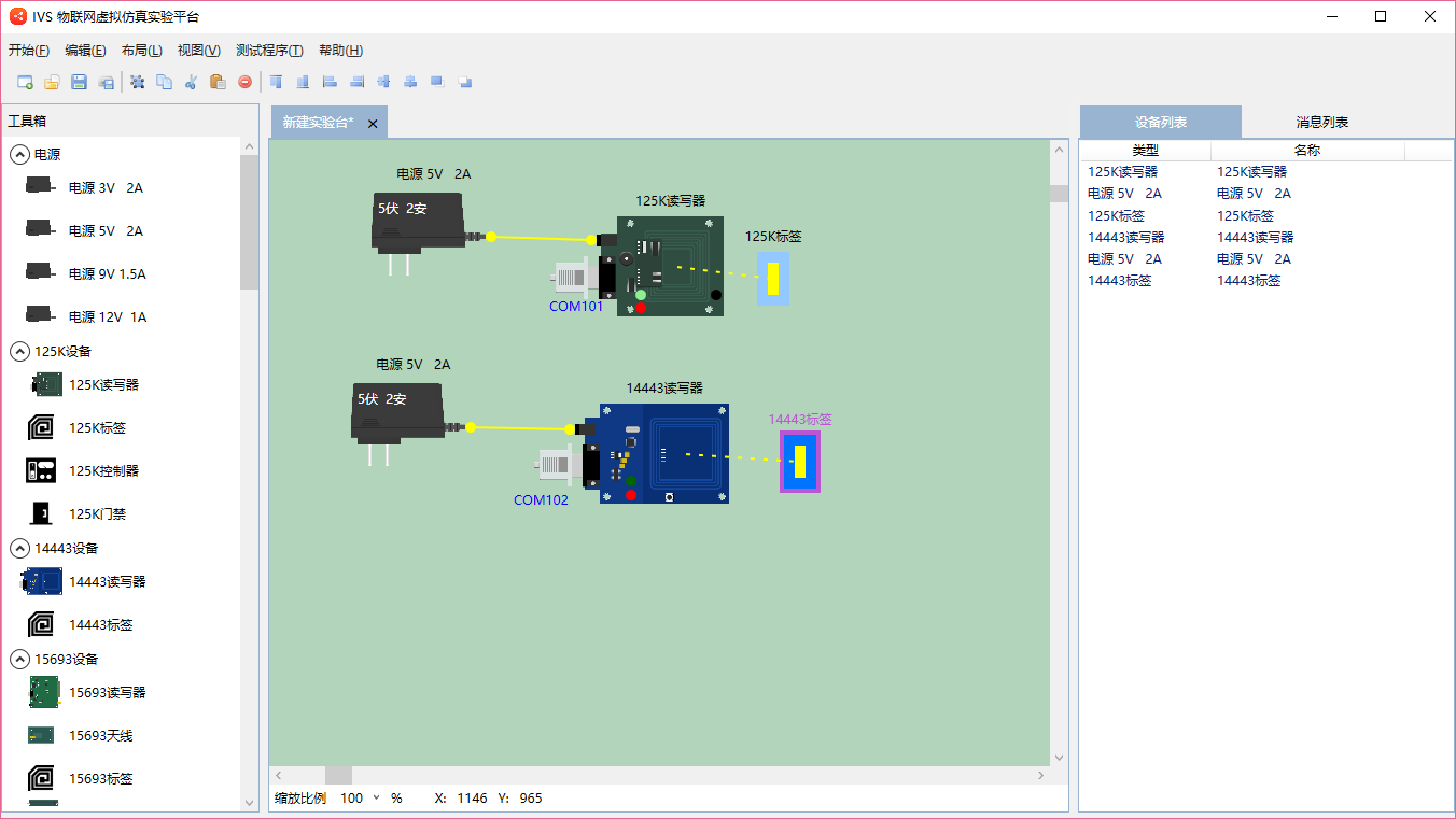 《物聯(lián)網(wǎng)虛擬仿真實驗平臺》虛擬仿真了各種RFID、WSN等常見的物聯(lián)網(wǎng)感知層設(shè)備。具有真實設(shè)備的完整接口和特性,可以通過串口及網(wǎng)絡(luò)進(jìn)行訪問。可以支撐的實驗內(nèi)容如下表所示: